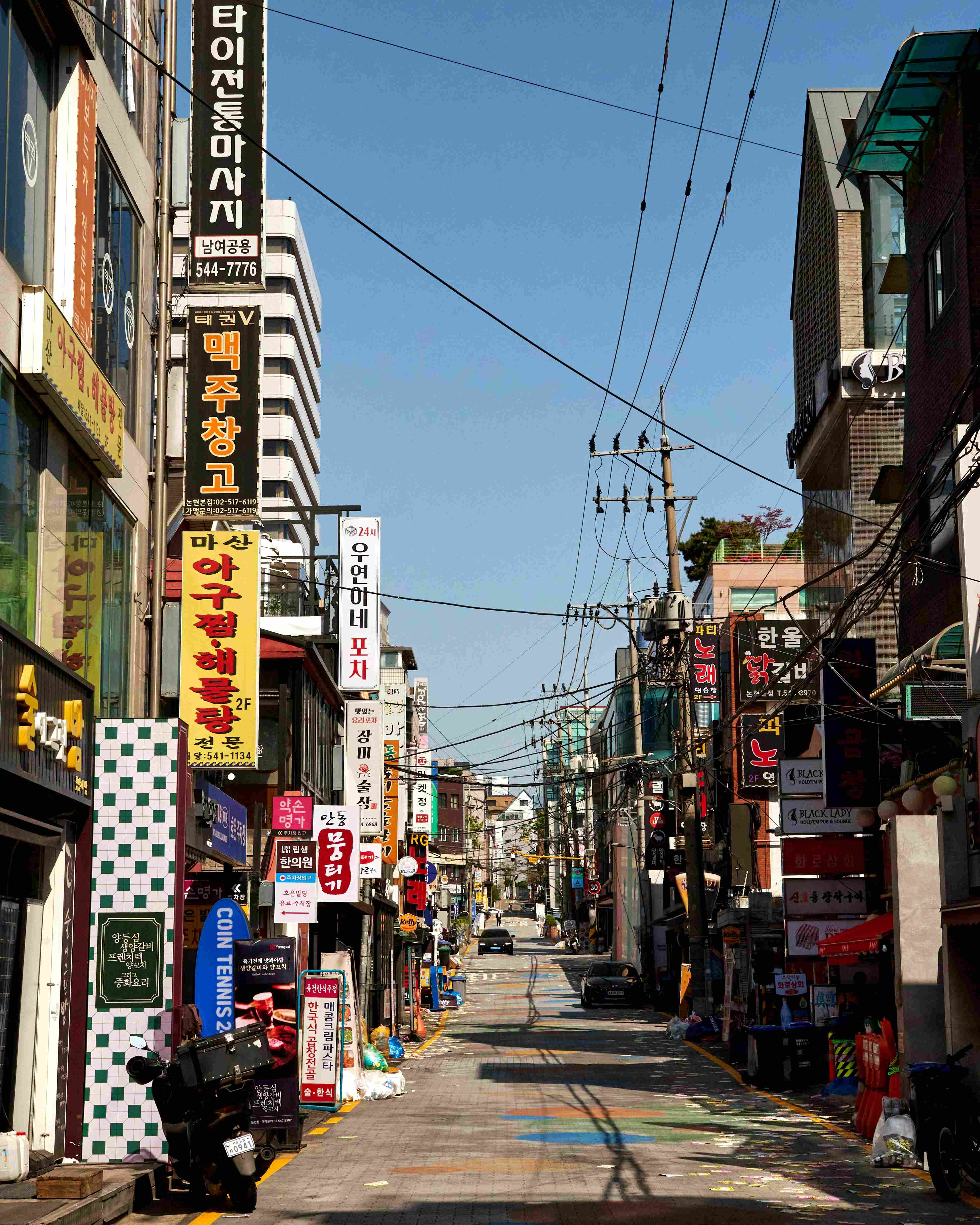 젊은이들의 활기가 넘치는 번화가로, 패션거리와 트렌디한 카페, 맛집이 즐비합니다. 밤이 되면 네온사인과 음악으로 더 화려해집니다.